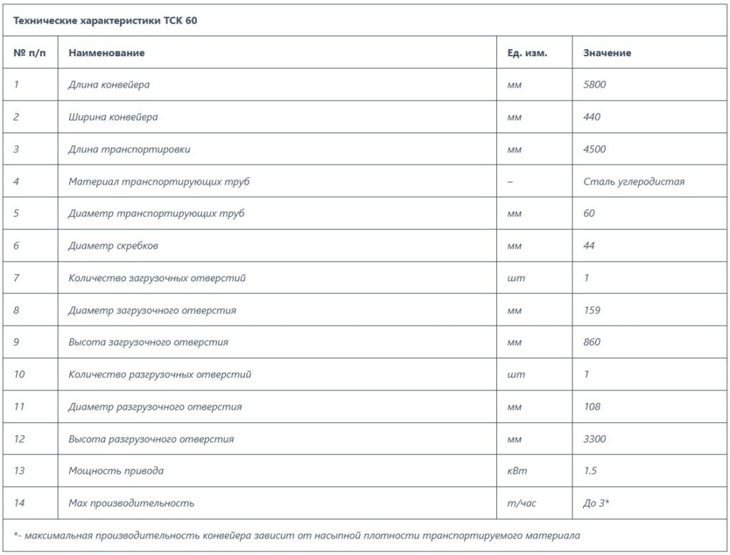 3.Скребкового трубчатого конвейера ТСК 60.