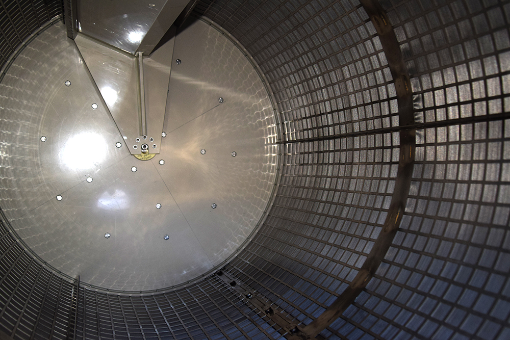 исходная вода входит внутрь барабана. Фильтрация происходит изнутри наружу. Фильтр постоянно или циклически медленно вращается.