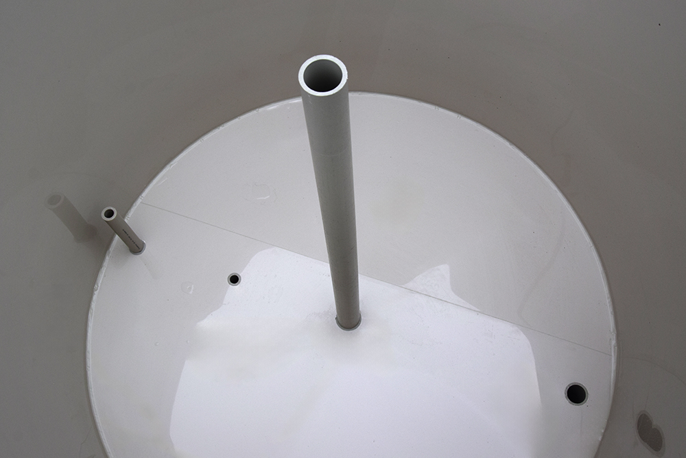 Емкость оснащена крышкой, сливом, ножками для устойчивости.