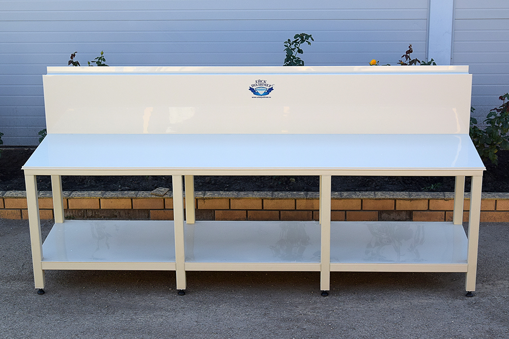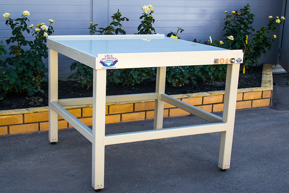 Стол предназначен для разделки и последующей обработки пищевых продуктов в различных производственных помещениях. Выполнен из полипропилена без химических добавок и красителей, поэтому не впитывает и не выделяет запахи, не меняет физико-химические свойства продукта.