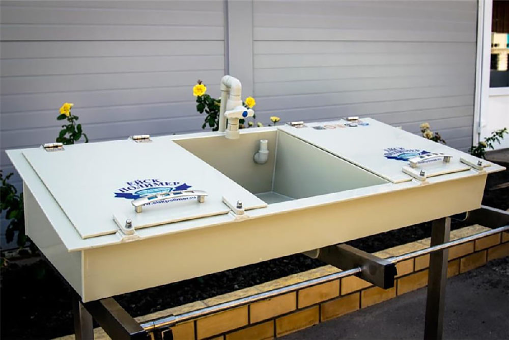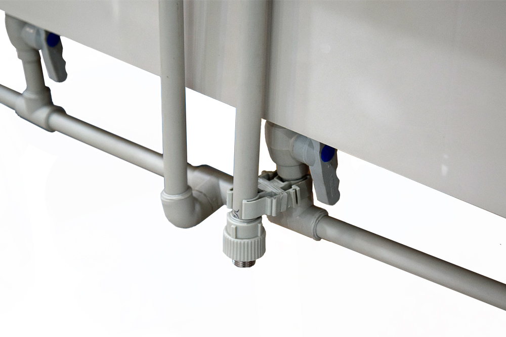 Все три секции оснащены кранами для слива воды. Вторая секция оснащена краном для подачи воды и системой перелива.