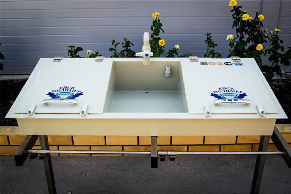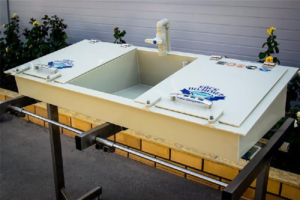 Все три емкости сверху закрыты крышкой. Бак оснащен тремя кранами в каждой емкости, для слива жидкостей.