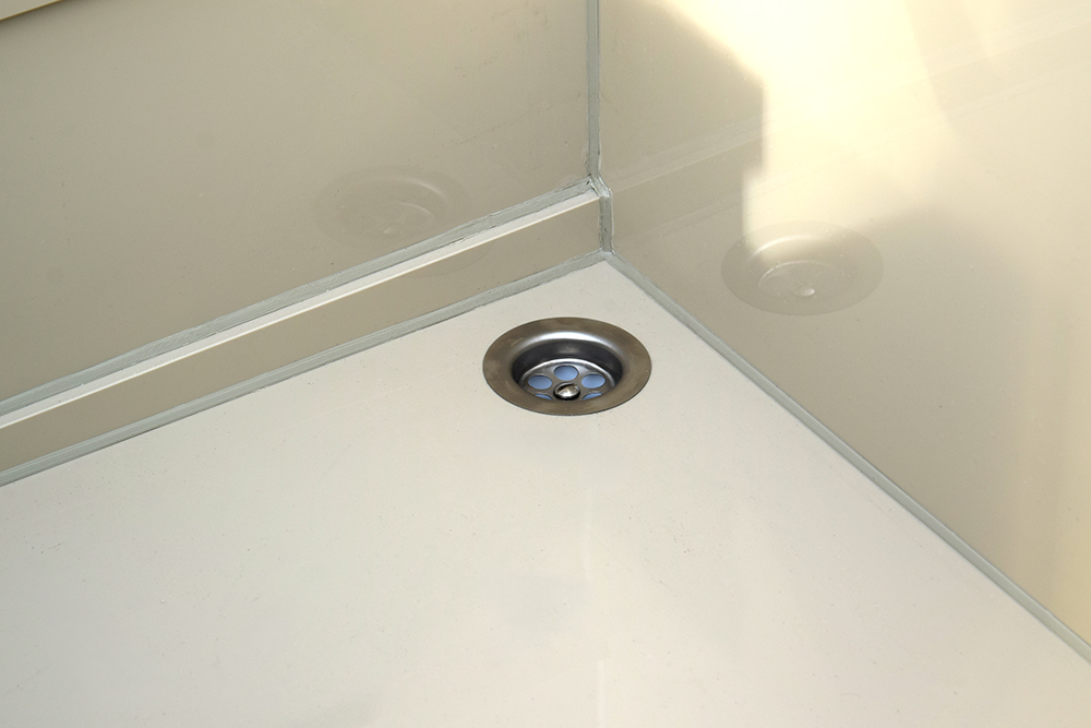 Мойка выполнена из полипропилена, с использованием нержавеющей стали. Оснащена тремя съемными пластиковыми решетками, смесителем для душа, сифоном.